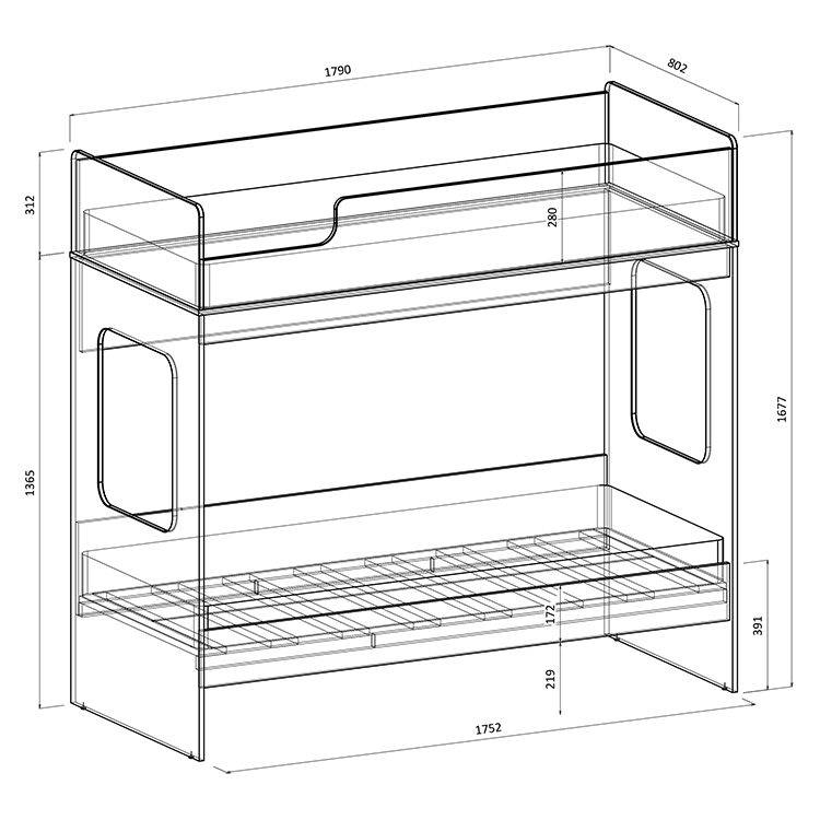 На нижней кровати Легенда E201 есть места хранения, оборудованные 4-мя распашными дверями.