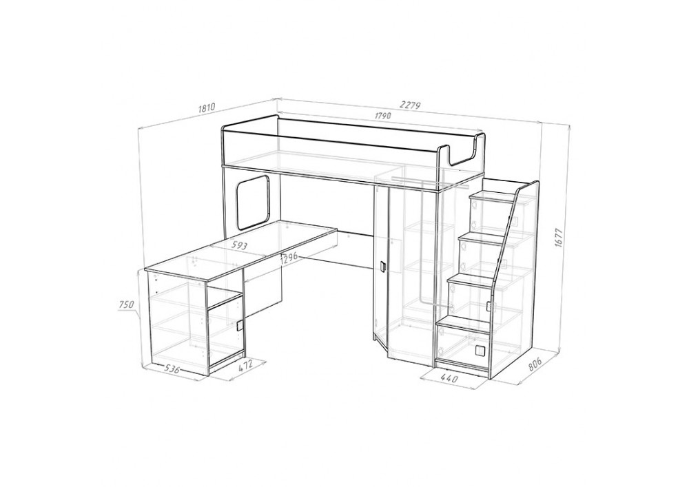 Высота кровати чердака всего 1677 мм.