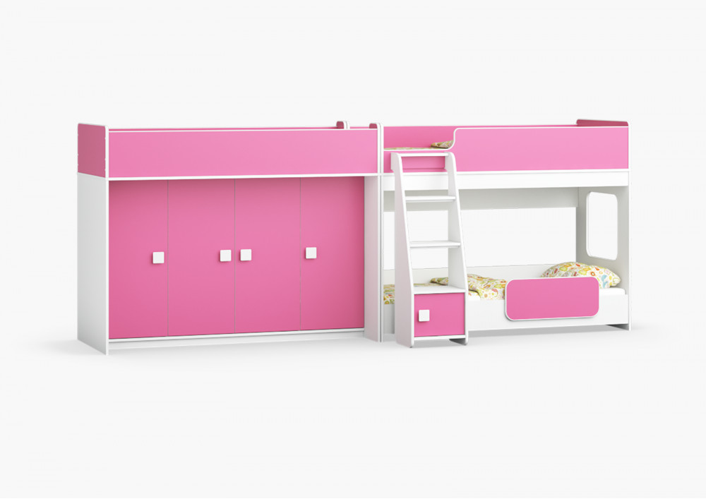 Две кровати, огромный шкаф для хранения вещей – одна лестница. Идеальный вариант для троих!